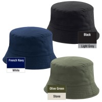Get two hats in one with the practical Beechfield Reversible Bucket Hat. Designed with a different colour on each side, allowing you to flip your look in an instant. Crafted from durable, quick-dry fabric with a structured brim, it's perfect for sun protection or casual style. Customise it with your print on the front panel of your chosen side, offering twice the branding opportunity or personal flair. An outstanding choice for promotional giveaways or a flexible, fashion-forward personal accessory.