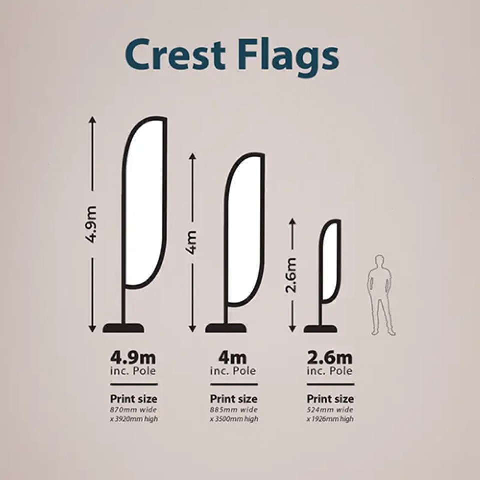 Project an image of prestige and stability with our classic crest flags. Designed for a formal, stationary display, these flags feature a rigid, vertical construction that presents your branding with elegant authority. The fabric is tensioned on a sturdy frame, ensuring graphics remain perfectly flat and visible without relying on wind. Ideal for indoor events, hotel lobbies, corporate entrances, or golf courses, they offer a sophisticated alternative to moving flags. Available in various sizes with optional single or double-sided printing, crest flags deliver a polished and professional enhancement to any setting where a dignified brand presence is required.