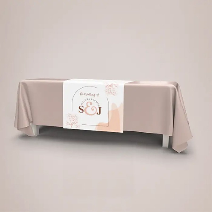 Define your space with a sleek, central statement. Our custom printed table runners offer focused branding to enhance exhibition tables, buffets, and registration desks.