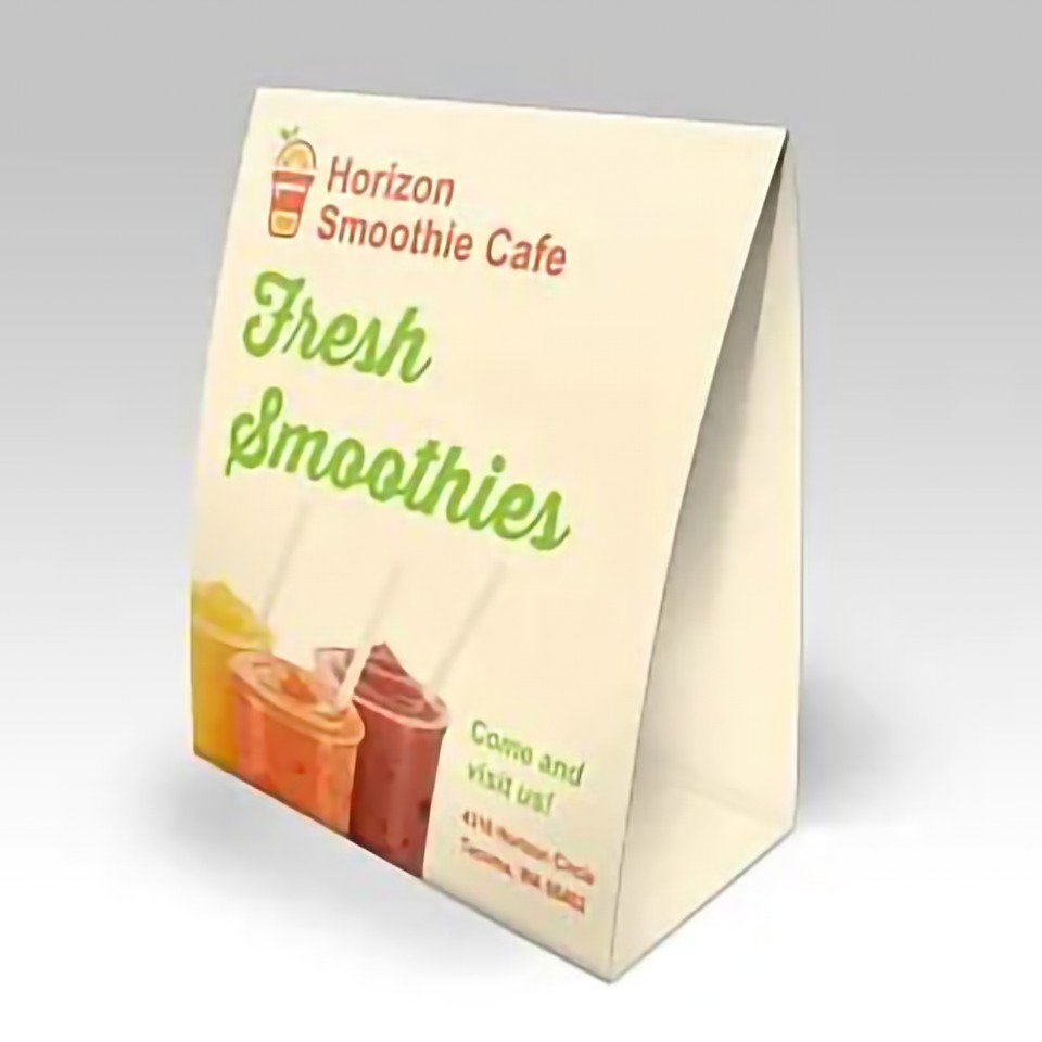 Your custom table tents are delivered flat for easy storage. Simply interlock the bottom flaps to assemble, making them perfect for compact back-office spaces with limited room.