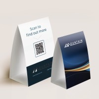 Full-colour printed table tent card on thick 325gsm Art Board Silk
