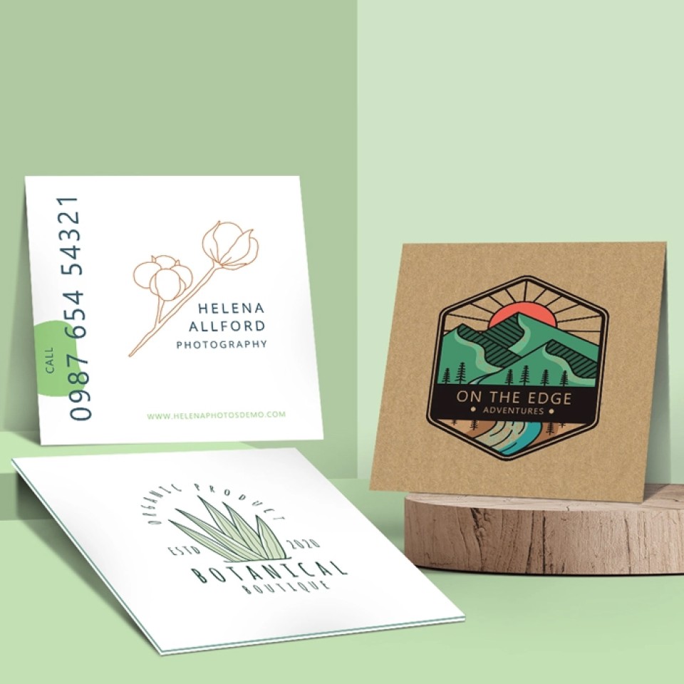 Square business cards are a great option. Measuring just 55 x 55mm, they're compact and easy to carry. These cards are perfect for customer thank you cards or for sharing your client's contact information. With 5 different stocks to choose from, you can find the perfect card for any occasion.