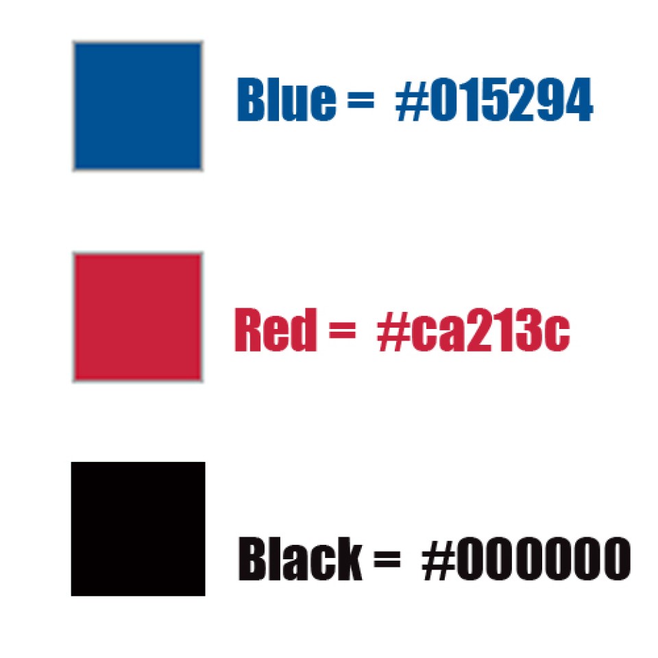 With 3 sizes to choose from 2.64 in (4cm), 1.42 x 0.47 in (3.6 x 1.2cm) and 4.5 x 2.75 in (11.4 x 7cm) and three colours Colours (Black = #000000), (Red = #ca213c) and (Blue = #015294)