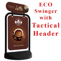 Elevate your shop front advertising with the Compact Eco Swinger. This isn't your average A-board; its innovative design features a graphic panel suspended from a robust tubular frame, allowing it to swing and gently sway to catch the eye of passers-by. The graphic is permanently printed directly onto the aluminium panel, offering exceptional durability and vibrant, fade-resistant colour. Its heavy-duty base provides stability in windy conditions, making it a reliable and charming addition to any boutique, café, or salon entrance.
