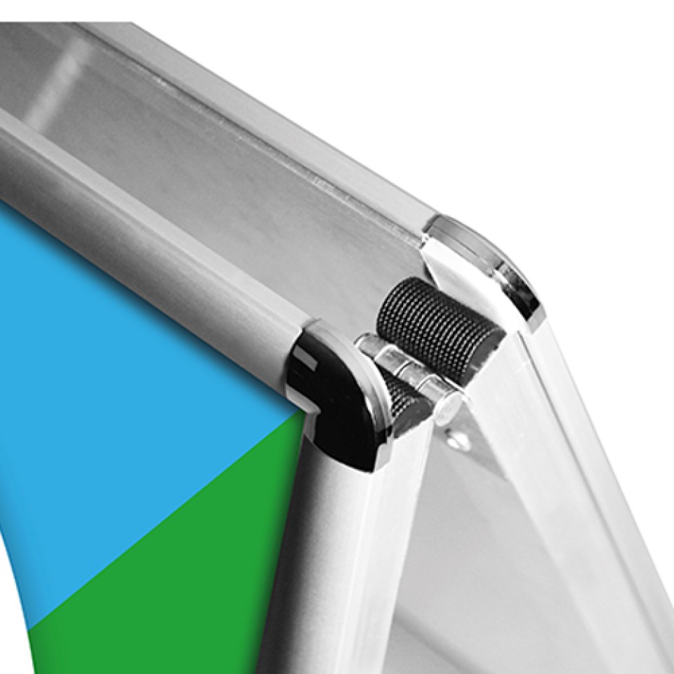 The A master-Lite is your ideal, cost-effective pavement sign for dynamic advertising. Designed for A1 and A2 posters, it features front-opening aluminium snap frames for effortless poster changes. Safety and durability are key, with rounded corners, UV-stable anti-glare covers to protect your graphics, and a hard-wearing satin finish. The smooth galvanized steel back panel is perfect for vinyl messaging. Best of all, its lightweight, fold-flat design makes moving and storing this double-sided display incredibly easy.