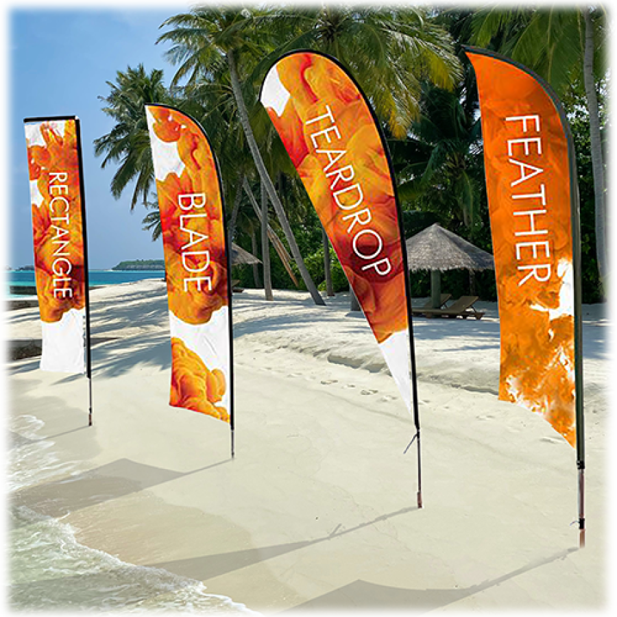 Stand out with eye-catching motion. Our teardrop flags combine a unique shape with high-impact graphics, designed to flutter and attract attention at any outdoor event or location.